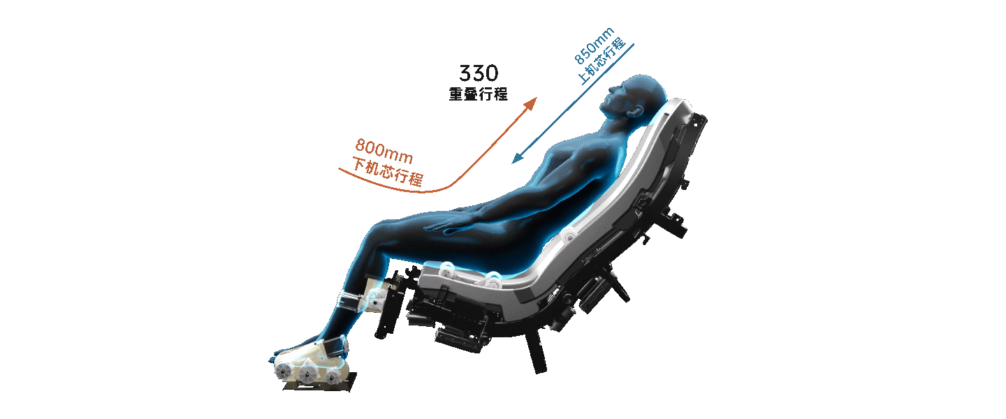 专利技术WSL导轨 20°的大开合角度,140cm超长按摩行程,贴合身体曲线深度覆盖。