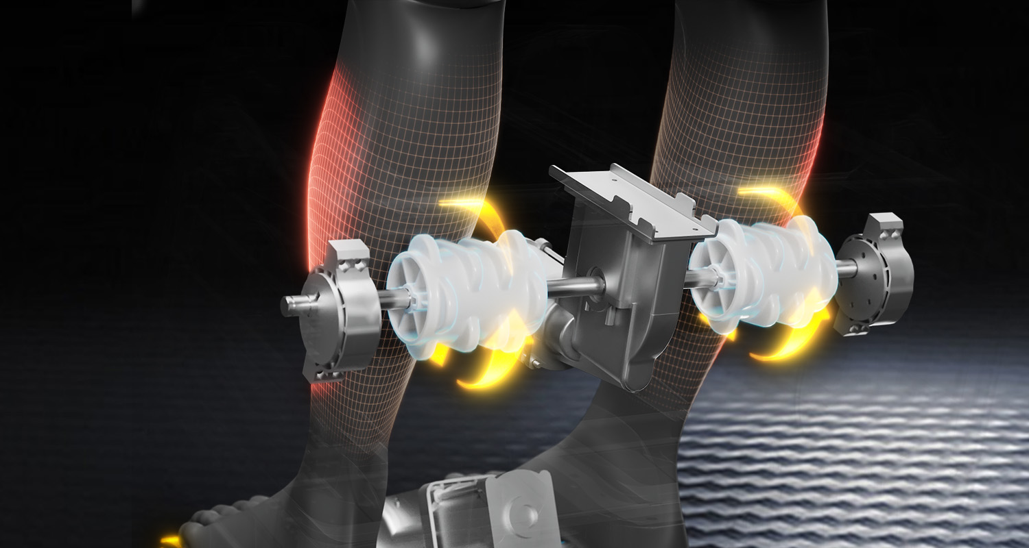 66层气囊覆盖座部腰部腿脚部以及手臂和肩部, 多层包裹,层层递进;手臂、手掌三段式气囊, 从手掌、手腕、小臂三段式层层挤压递进。